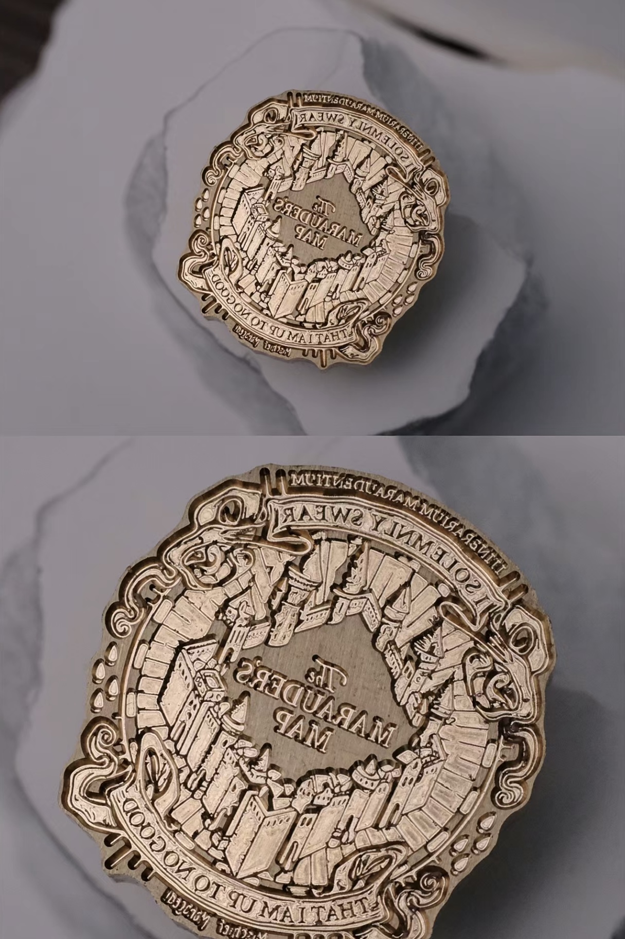 A family crest. A wedding monogram. A book-press device. A fictional school. A private cartography. If it can be drawn, it can be pressed.